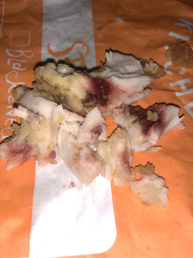 I made a mobile order and it was supposed to be ready by 7:24pm. I arrive and I can see my ticket is still sitting on the counter, not made. I didn’t end up receiving my order until 7:59pm. And more issues before this even happened. (1) When I went inside to pick up my order, I wasn’t acknowledged until maybe 10 minutes later. There were multiple employees just standing around doing nothing. An employee just looked at me and said “what do you need?” And before I could answer, walked away. (2) When I finally got my order (well after 30 minutes of waiting, plus the entire time being over 45 minutes from when my order said it was ready for pickup) the chicken tenders were TINY! I’m talking about less than 2”, all three of them! (3) My fries weren’t even warm. They weren’t even just a lukewarm or cool, they were ice cold. Like they were still frozen. (4) They forgot my sauces and when I politely asked “excuse me when you get a moment, could I have two blackened ranches?” the employee just looked at me, grossed out, grabbed the sauces and tossed them to me across the counter. I thanked her and all she did was roll her eyes and shake her head. (5) After waiting in the store for 30 minutes for my food to be ready, at 7:59pm I was told “we’re out of spicy tenders, do you want to wait 10 minutes for them to come out?” 30 minutes of waiting for an order that should have already been packaged and ready for pick-up, and you’re asking me if I want to wait an additional 10 minutes because you don’t have what I want? Unacceptable. (6) My chicken sandwich was made and it was bloody and raw inside. Most of the “patty” was breading, but the little bit of meat that was given was still...