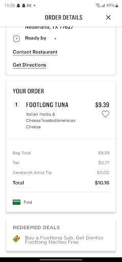 Read moreOnly reason I give them 2 stars is because they were open later than the other local subways. Other than that it was a pretty bad sandwich. Mainly since I asked them to toast it, and made a point to ask if their toaster was currently on to which the employee at the drive thru window replied yes. I get home pick up my sandwich, soft, take a bite, rubbery bread. Clearly they just stuck my sandwich in the microwave, which is horrible and the exact reason why I asked if the toaster was on. They deliberately did not care, and just chose to lie for some reason. I will not be back to this...