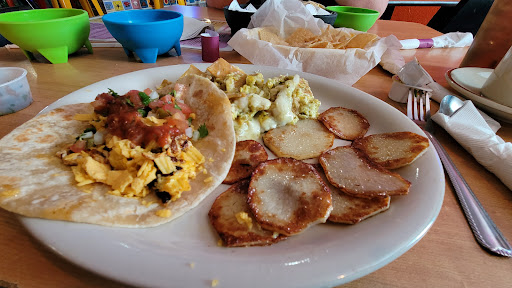 Chilaquiles w/ green sauce. = Good but I wish it had more green sauce and cheese. Just my preference. Chorizo, Egg & cheese taco w/ pico. = Flavorful Fried potatoes. = Crispy edges and tender in the middle Salsa = Great flavor and fresh.