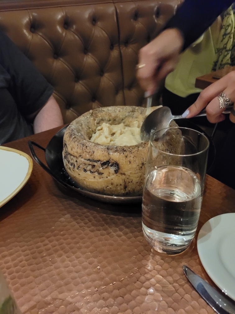 The majority of our dishes were outstanding. The grilled squid appetizer was the best we have had in awhile. The squid was very tender and went perfectly well with the sliced fennel and lemon vinaigrette. My husband's wagyu dish was also beautifully executed. It was cooked to the perfect medium rare and paired nicely with the garlic sauce. Sides included lightly seasoned crispy fingerling potatoes and broccolini also cooked to perfection. I ordered the house special, lobster in vodka sauce with house made pasta. This was the biggest disappointment when the other dishes were so well delivered. The pasta was over cooked and mushy. The sauce was a bit sweet and there were only a few small pieces of lobster claw meat. This was surprising since the dish was more expensive than the wagyu. When the hostess checked in on us, she was gracious in offering to get us something else. I went with the black truffle wheel since we had seen other tables ordering it and the waitress had said it was her favorite dish there. Indeed it was incredible and did not disappoint! The pasta was not overcooked and the sauce was to die for! I loved it and would come back just for that dish alone!