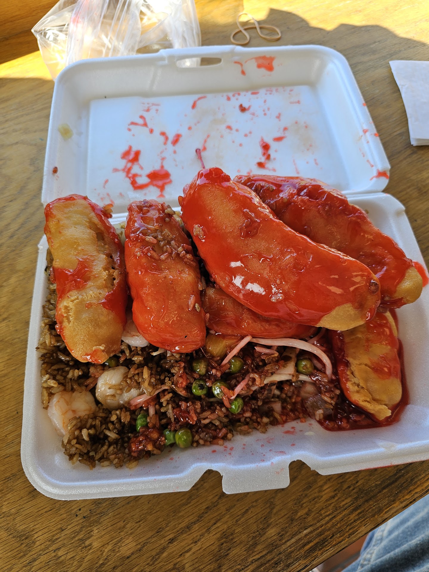 Read moreOrdered the orange chicken with chicken fried rice and crab rangoon. The orange chicken tasted okay at best but the texture was gross, the chicken fried rice tasted like someone put a cigarette out in it (completely inedible). Even the crab rangoon wasn't that good, which is surprising because I have never had crab rangoon that I didn't like from anywhere until I ordered from this restaurant. Rarely ever throw my food away, but I threw away most of this meal because it was so nasty. Absolutely horrible, total waste of $20+. Will never be ordering...