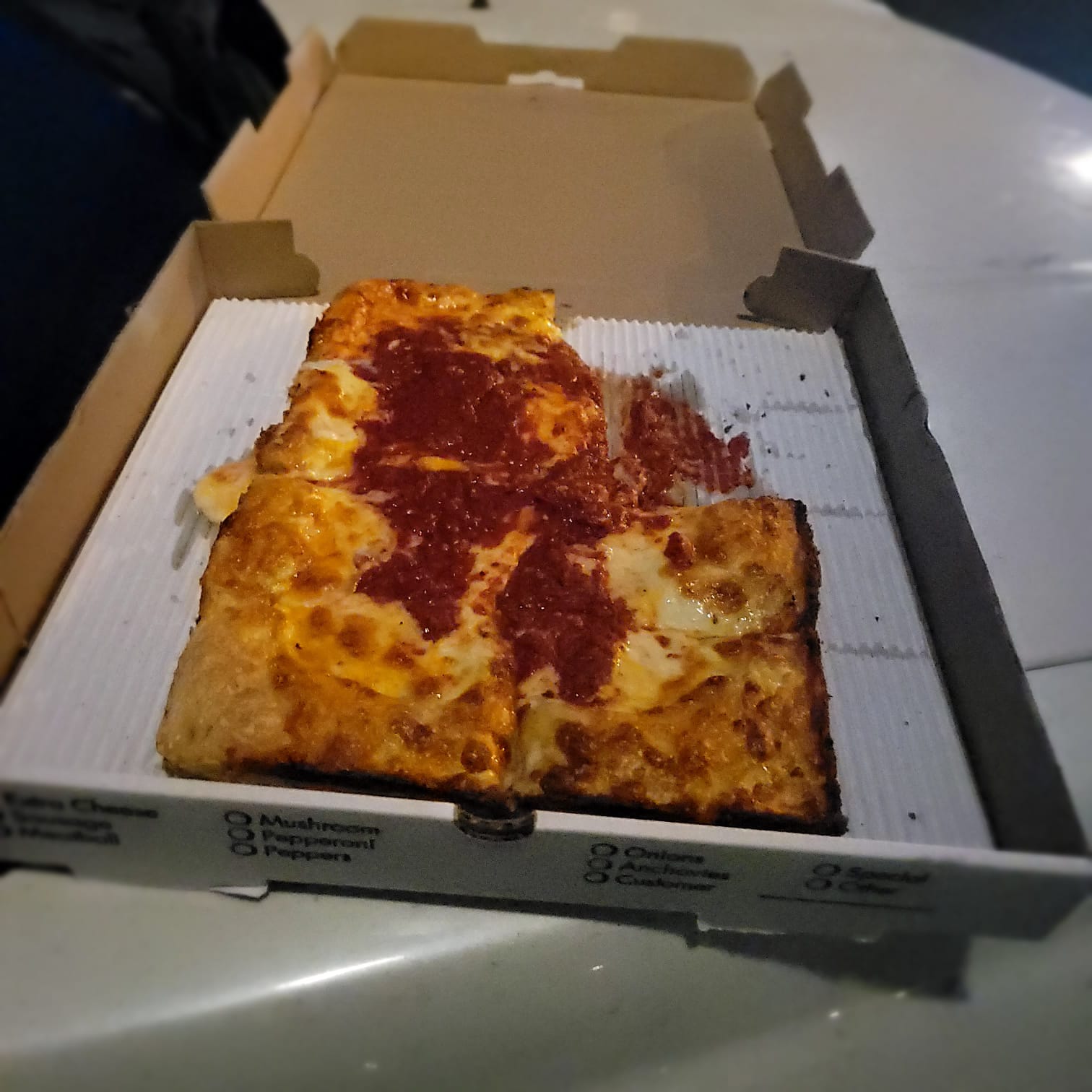 Read moreOne of the worst pizzas I've had. This is NOT Detroit style pizza. The right side of the pizza had the burnt edges. The left side... look at the pictures. Sauce looks like they tossed it on there with no finesse. The pizza is super thin. Pizza was floppy towards the middle because it was so thin and so much sauce. Ordered a slice of pizza and that wasn't any better. I should've asked for my money back instead of giving away the pizza to a...