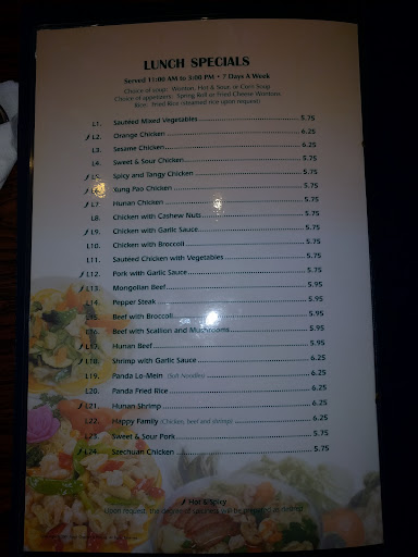 Ā Ā Ā Read moreTook four years to be talked into going here. Heard negative things about the place. Well went with another couple, at 5:30 pm but didn't know they don't have a dinner menu. If you want sweet/sour chicken and sweet sour pork you will have to order two complete dinners. Long story, asked for water for four the texting waitress must have been busy since we got two glasses about 10 minutes in. Couple with us got their food fairly quickly and then my sweet and sour chicken. All food was Luke warm. Then my wife's noodle mix arrived cold sent back to be heated...came back warm but the real problem didn't accure till the bug came out of the mix and jump three times across her plate and disappear into the mix.Tried to talk to the man on duty who kept saying....I see no bug, I see no bug and proceeded to dump the dish into a to-go tray and tear apart the dinner looking for the bug and yelling at my wife. Needless to say will not go again. P.S. ordered 4 dinners and got one dish of 2 cups rice to share....one and a half pots of hot tea and a waitress that was to busy to wait on us..would have liked a tour of the kitchen. Of course wife did without dinner. Food subpar quanity at dinner hours small and waitress...