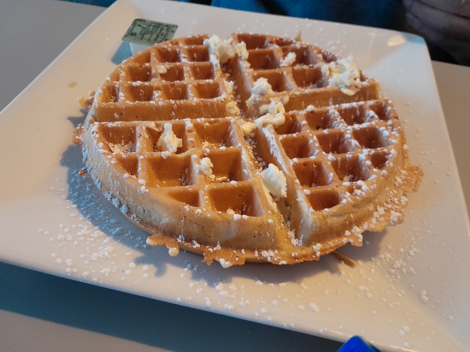 We see this place busy every weekend, and we were excited to try. This place is small but able to accommodate quite a few tables. We were there at breakfast on a Saturday. We were early, and there was plenty of seating available. The service was quick and efficient. They have a large menu of diner type items. We only ordered breakfast and coffee. The coffee was good, and they had a bowl with a variety of creamers, including real half and half. Win. We ordered blueberry crêpes, a blueberry Belgian waffle, and a plain blueberry waffle. We also ordered 2 sides of bacon, an over medium egg, a scrambled egg, and hash browns. The waffles were both cooked well. The eggs and hash browns were also good. But, the blueberry sauce/topping was cold, so it was unpleasant to bite into ice cold blueberries. That also made the whole crêpe dish and the waffle go cold. The bacon was not good at all! I haven't found much bacon that I don't love. This was awful, I don't know if it had no salt or smoke or what, but bland is an understatement. The crêpes are not even close to crêpes. They are blintzes. They were thin for a pancake, very thick for a crêpe, and filled. Then, smothered in cold fruit sauce. The filling was tasty, but being just warm made it less than enjoyable. Everything separately was tasty (not the bacon) just not prepared together in a way that made the most of the ingredients. I doubt that we will get up early to go...