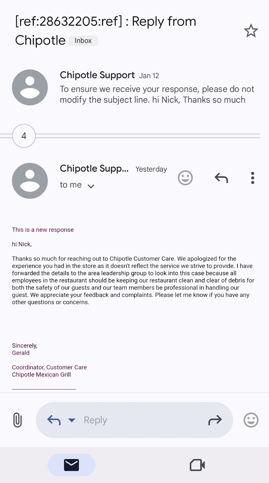 Also, today, my chicken was dry, cold, and burnt (which I'm not even sure how that happens). Most of the pieces of chicken had hard black edges which came off the pieces of chicken, and it was like chewing on a sharp pieces of plastic. My girlfriend said hers had ice chunks in it, although she couldn't ascertain exactly where the ice chunks were coming from.