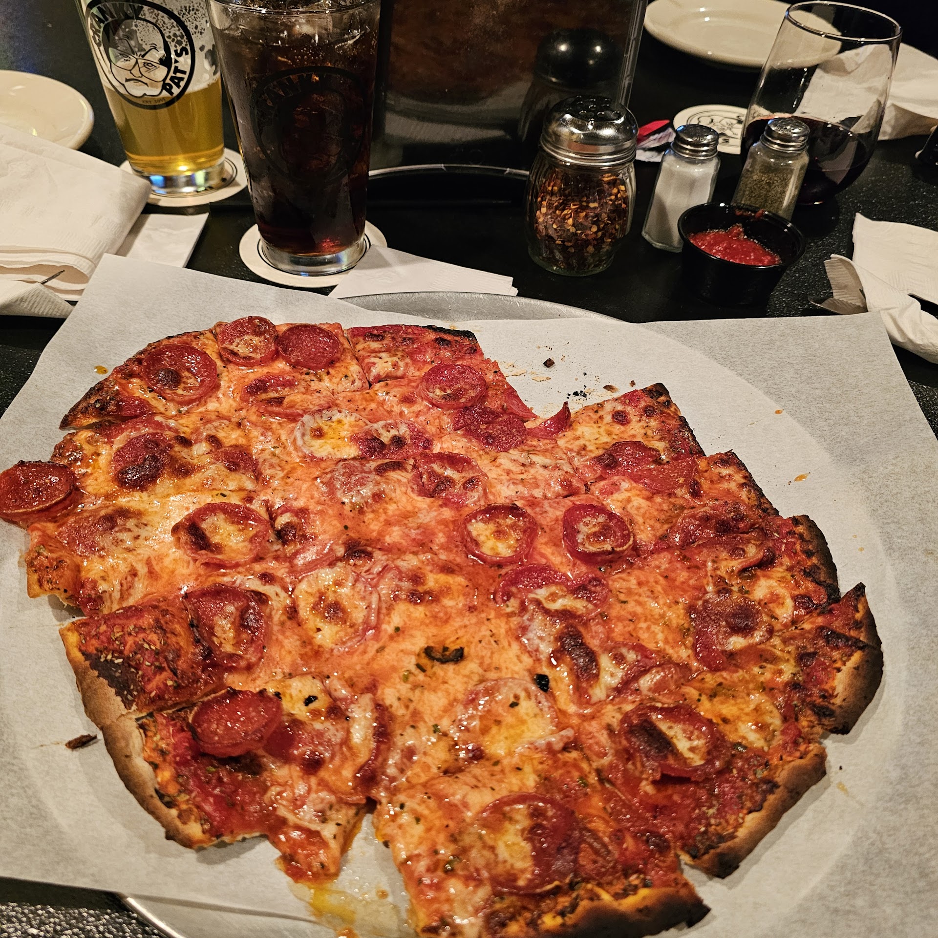 You reviewers are ruthless! 🙄 I've got a story to tell you. Grab a slice, get a beer, get comfy. I was raised on three historic pizzas in Milwaukee: Ned's, Pete's King of Pizza, and Maria's. I heard of the legendary Cranky Pat's and decided today was the day. I work in a downtown Neenah office and my day ends at 330pm. I had an appointment at 5pm. I pulled into Pat's at about 345pm and walked through the door with some expectations that thankfully, were not met. I went up to the register expecting to order right there, watch the cooks spin some dough for a few minutes, pay for my pie, and be out the door. Well, reality showed up and told me to take a seat. The server that met me at the register was clashing with my vibe, but that was my fault... I walked in with expectations. It was awkward. So I was all, "Hey, whaddya got for a personal pan or by the slice?", like I'm at Domino's. He politely said, "We don't do that here. We have a 12 inch or the big slice 1/4 pizza, but that takes just as long as a regular pizza. I can seat you if you want to make an order." The place smelled amazing and people seemed to be enjoying their food... I wasn't going to argue with the man entrusted to deliver on the legend, so I took a seat. I decided on the Big Slice 1/4 pizza, Milwaukee style: cheese, sausage, mushroom, onion (and black olive, just because no one from Milwaukee was looking). As I was waiting for my big slice, I took it all in. Clean floors, clean tables, typical pizza place decor, nice clean salad bar, plenty of take-out traffic, and busy kitchen and waitstaff. I'm very perceptive and I could tell right away there were issues with the hired help because Big Boss Man (dude was the size of a sheet of plywood) came out of the back and had a pretty firm discussion with some apparent new hires and a manager of some sort. I didn't hear a word of it, but Big Boss Man's body language told the whole story. Later on, the oven master had a few firm words with the new hire as well. Again, body language told me all I needed to know, and what it said to me was that these owners, managers, and dedicated staff care deeply about their cuisine and customer experience... but the reality is that finding employees that care about anything in our present world is not easy. After I took in Reality Pizza Rescue Wisconsin Edition, I realized I had been waiting on my Big Slice for 35mins. I caught my waiter and asked him if it normally took more than 30mins for the big slice. He politely reminded me that it takes as long as a regular pizza, but that he would check on it for me. Within 5mins I had my pie and I was not disappointed. It was worth every minute that I waited for it and I let my waiter know it. It came piping hot. The toppings were loaded and flavorful. No salt needed. I could taste everything I asked for, even the (shhhhh) black olives. My only regret was that I didn't order a 36 inch take out. The crust was thin and crispy with good flavor and just a bit of random dark toastiness at the edge for that classic last-bite taste you come to expect from any well-reputed pizza place. As I enjoyed my pizza, I continued to observe the operations of Pat's. I couldn't find any fault anywhere. The oven master is at the mercy of a conveyor oven and the time for each pie to cook, and that oven was LOADED! Phone orders and patrons kept coming in. It takes time to make a good pie. Pat's is BUSY because they have an AWESOME pizza! There's only one oven, MAN! The wait staff wasn't standing around, everyone was busy. The back kitchen was hard at work as well, preparing the entrees. I was happy to tip my waiter 50%. My point is, cut these good people some slack. You love their pie but don't like the wait?... order half an hour earlier. Before you criticize them, dine-in and watch them work their butts off to make you the best pie in town! After you take the time to appreciate their best efforts to keep you coming back, you'll show a little more love, patience, and respect in return. Be...