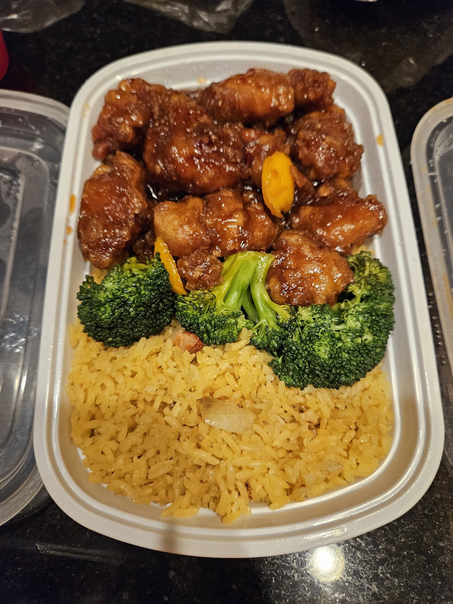 Still, the people working were very nice and thanked him for waiting when they finally gave him our food. Upon his arrival at home we discovered that he was not given our correct order. We received two entrees, three orders of crab Rangoon, two orders of dumplings and one carton of rice. He had ordered (and paid for) three entrees, one which included shrimp... It was late, I was quite hangry and they close at 9 anyway so no way to rectify.