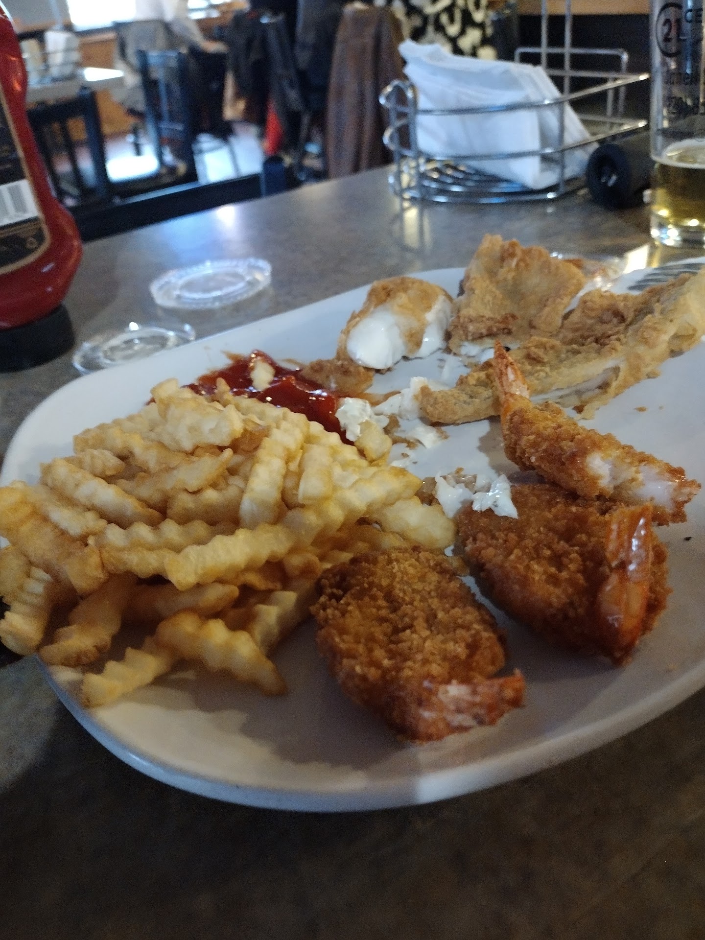 Read moreWent for Friday Fish Fry and got the combo $17. A large piece of haddock ( good), a butterfly of perch (very good,no bones), 3 jumbo shrimp (very good) . The tartar was kind of on the dill/more sour side. Not bad at all but I prefer the more sweet kind. The chef is a one man band and serves up better food than a kitchen full of staff. He had a break in orders and before he left his station he meticulously cleaned his kitchen. I'm talking Lean manufacturing organization and restaurant health inspector clean. The woman that was bartending was also on her own and she was BUSY! But she handled herself like a boss, made no mistakes and kept a wonderful smile and attitude. Another great experience at...