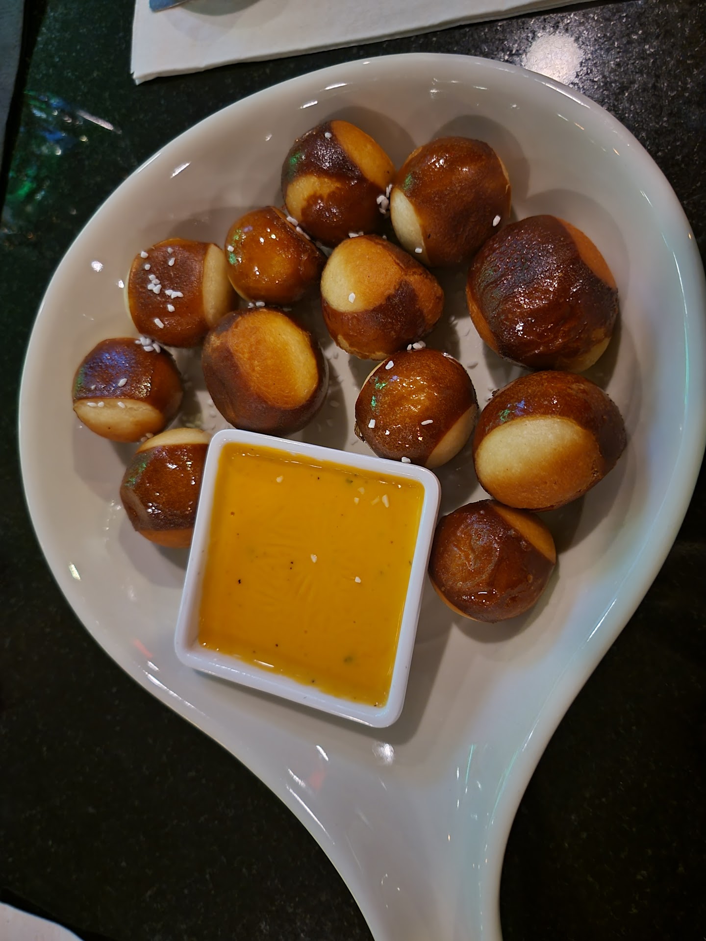 I decided on the pretzel bites and teriyaki chicken wings. She brought the pretzel bites out first, and although the beer cheese was not the best I've had, it was good.