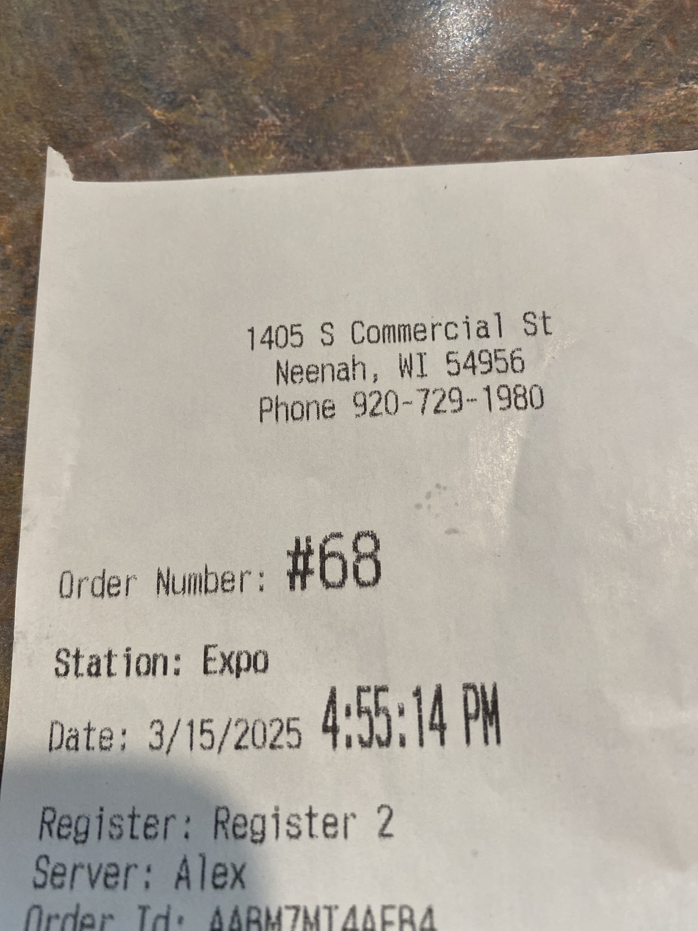 Read more"Would you like a side of attitude with that order?" Weekly I stop at Tom's drive thru window in Neenah. The food is acceptable. The prices are higher than other fast food restaurants, but the location is convenient. Today they were unable to take gift cards, but did not disclose this at the drive thru when I placed my order. When I got to the window, after I handed my gift card to the cashier, as I was waiting I "sailed' the paper-covered straw back into the window-No harm intended. No one was injured.(I do not use straws) Then I was told that they could not accept gift cards, my comment was why didn't they post it on the drive thru(or at least announced it when they took your order.)? Just a shrug of the shoulder. Than manager-Godzilla comes to the window to ask me "what the trouble is" and blah. blah. blah. I don't need attitude with my lunch. I set the soda back on the shelf on the window and left. Her parting words were, "don't throw things at us." I didn't throw anything at them, but perhaps I "threw" a bit of advice on how to run the restaurant: If you can't accept payment types, disclose either verbally or through signage. Yes, I could have paid in cash, but I don't want a negative experience...
