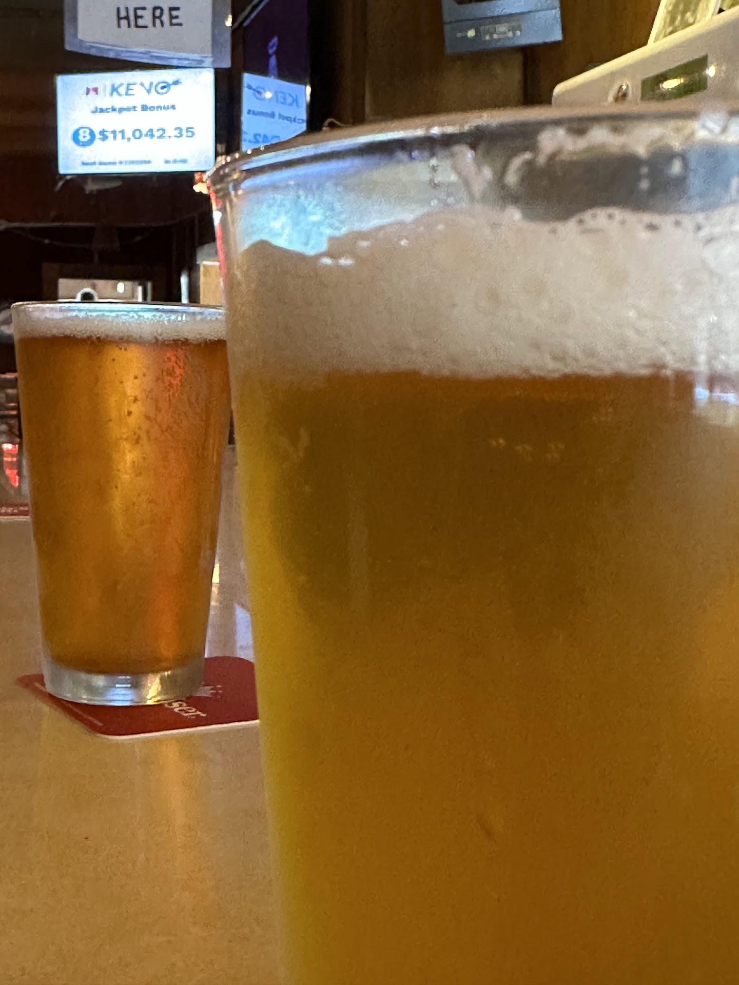 The tavern has only just opened. It was already hopping with a few regulars, helps they have slot machines, keno, and power all available for entertainment. They also had pool table and outdoor seating of which we did not avail ourselves - too bad since the place since on the Nahelm River!