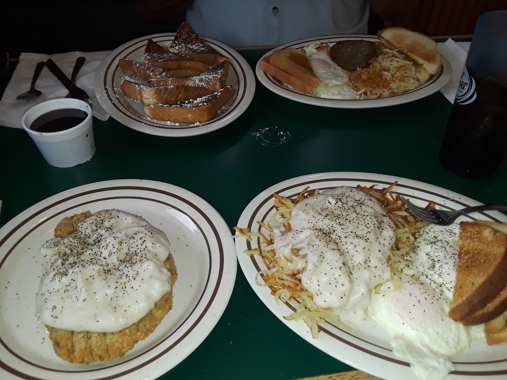 Read moreWe've been pasted this place in Nelsonville many times and we've always noticed how full the carpark is.Well today we went in and had a meal there. Working on trucker's logic if the carpark is full then the food is good. Well we were certainly not disappointed I had the country style breakfast which consisted of 3 stripes of bacon, 3 fried eggs (over easy) hashbrowns 2 slices of wheat toast & a bowl of sausage gravy with a fresh homemade biscuit & a glass of milk. All the food was freshly cooked and hot when it arrived on the table, the choice of menu is great and they also have a daily special's menu. The staff are all very friendly and efficient, wandering around the restaurant checking if everything is OK. The restaurant is clean and spacious and well layed out.