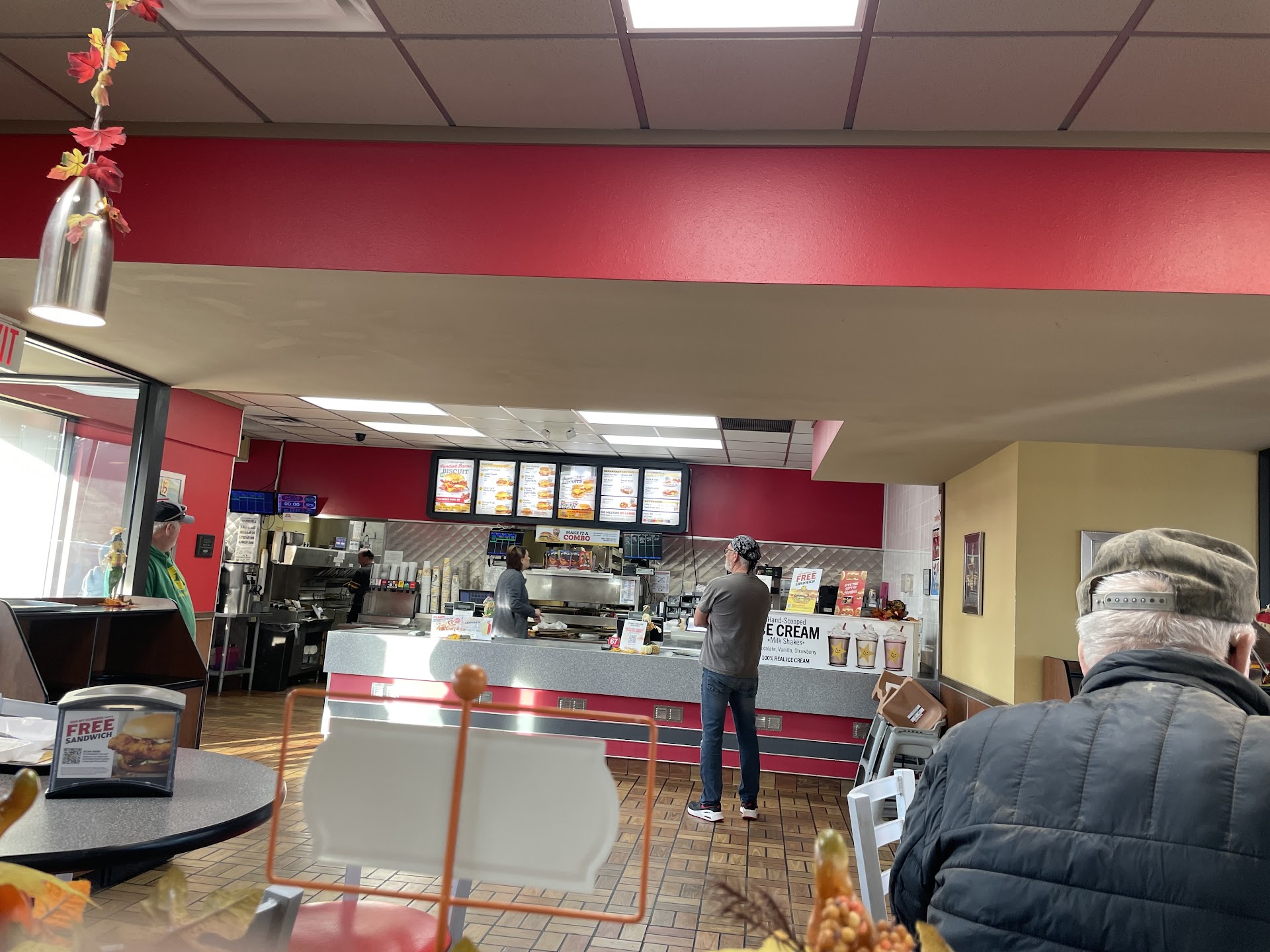 Read moreas soon as i entered with my fiancé, it seemed very depressing, as the employee didn’t greet us or even smile once when taking our order or answer our questions about their menu. after receiving our food, the burger i ordered had tomato on it after requesting it off. i checked the receipt and it said no tomato, so i informed the staff, and the lady rolled her eyes at me and told the kitchen to make me a new one. as the burger was being remade, the employees stood there, staring at me, and talking. after that, the food was perfect. as we were about to leave, an employee was taking out the trash, and it began to leak everywhere. you think that once spotted by the other employees, someone would clean it up, but they just stared at her and walked away, leaving the mess to her as they stood around. during all of this, beginning to end, there was no one else eating or requesting food from the drive through. the employees seemed very lazy and didn’t have customer service...