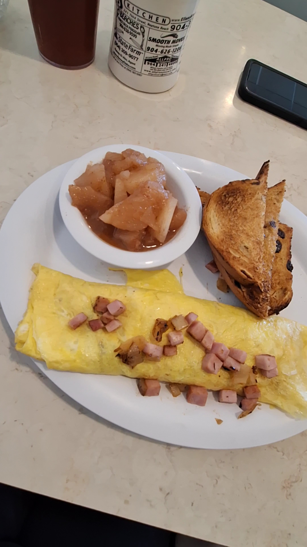 Read moreSunday morning ride to the beach to watch the sunrise, a great way to start the day. Then off to Ellen’s Kichen for a good breakfast. We had been to her old location numerous times, always very good. We lost track of were she moved to when the renovation took place. We finally rode past her new place a couple months ago and new we would be back for breakfast again. You see we live on Orange Park and looked forward to those rides and the food in the old location. This morning the ride was great , of coarse the sunrise never fails. Lol!! Our breakfast was a real disappointment. The omelette I had was way short of 3 eggs as the menu stated and was paper thin ,as you get from the liquid eggs in a carton. Hash browns were pressed down to be the same thickness as a single piece of shredded potatoe. All this on top of no real flavor in the food ,as was in the past, left a very disappointing visit to Ellen’s new location. My wife’s food was pretty much the same. On a high note, our waitress, Maria, was very friendly and attentive during our stay. A very good ray of sunshine....