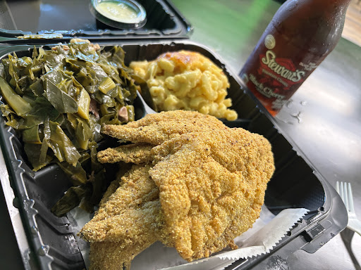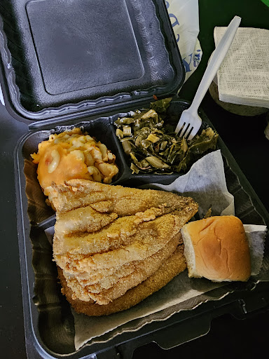 2 days in a row of PERFECTLY SEASONED and BALANCED FLAVORS, WELL PORTIONED, meals. I devoured the whiting platter with mac and cheese and collards. Hubby had Shrimp. Our proteins were so good that you could taste great flavor even though it took 20-30 minutes before we could get into it. Everything was still lightly crisp and not overly salty. I'm the type that eats fries in the car because they aren't the same cold, same usually goes for fried seafood and this was sooo on point. More importantly the WHITING IS FRESH (not that nasty oversized usuallyfrozen "ling" whiting many places sell. Collards were great and had the slightest hint of vinegar instead of sugar, which was how my granny used to fix hers. I don't know when soul food made the switch to putting sugar into everything, but I'm so glad that isn't the case here (I don't feel like I'm eating a diabetes inducing dinner). The baked mac and cheese is actually baked. The best thing about it is that there's no off-putting flavors like black pepper, paprika, mustard, etc. that some people like to cook with in their recipe. It tastes like mac, cheddar, milk, and butter simple perfection. The kicker... Real sweet Hawaiian rolls! Not the cheap dry milk roll other places put on the side. We ate here for the first time yesterday... so good I had to come back to make sure it wasn't a dream. Let me tell you it wasn't. Definitely reminds me of the food I grew up with. This is what anticipate anytime I'm getting soul food. Finally a local restaurant I can confidently eat at. The woman owner who served us was so warm and friendly as well. They've absolutely earned our business. And the Playlist will have you bopping to old school RnB....