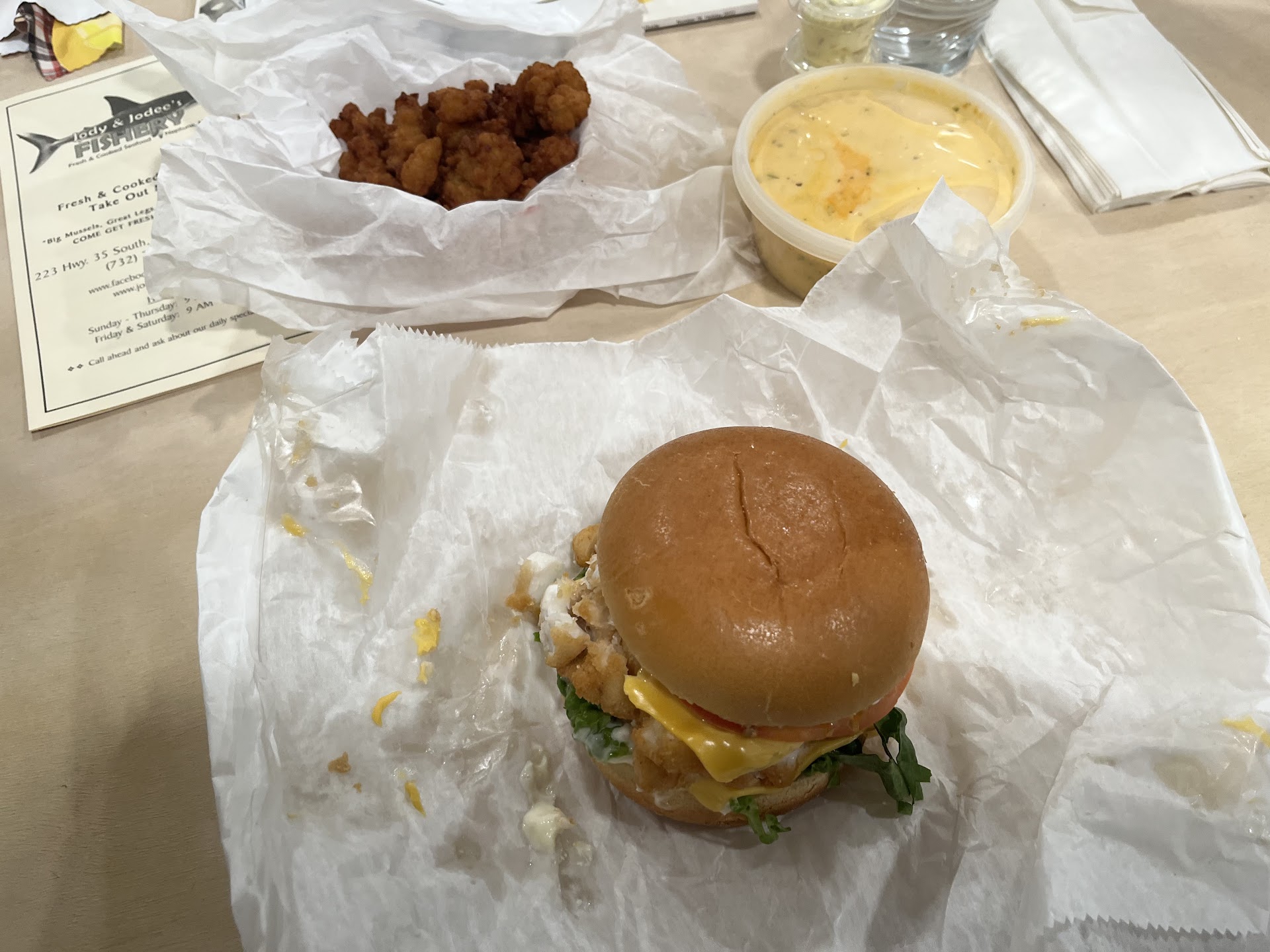 Read moreThe people were pleasant enough, however, the food was atrocious. I was actually shocked they had so much business considering how bad most of our food was. I went with my friend and we got a 1/2 dozen oysters on the half shell, hush puppies, soft shell crab sandwich, Maine lobster roll, lobster bisque, Lobster Mac and cheese, and New England clam chowder. The soups were decent however I read a review stating that the lobster bisque was the best they ever had and it’s truly far from the best either of us have had. The sandwiches were also mediocre, the lobster in the lobster roll was rubbery and flavorless and overall tasted mostly of red bell pepper and the soft shell crab sandwich was too salty. The oysters were very bad my friend had one and had to chuck out the rest because it was so abysmal, the same goes for the Mac and cheese, the lobster on top was rubbery and bitter and the Mac underneath was cold, not even remotely cheesy, and tasted like it had been boiled in dirty dishwater and we had to throw it out after a few bites. The hush puppies were the only good thing about the meal. Overall, none of the fish tasted fresh, most of it not even good enough to eat. My friend and I are not ones to waste food but we couldn’t stomach it. Their good reviews and booming business left us bewildered and upset for wasting so much money on such bad food. If you’ve ever had good seafood I...