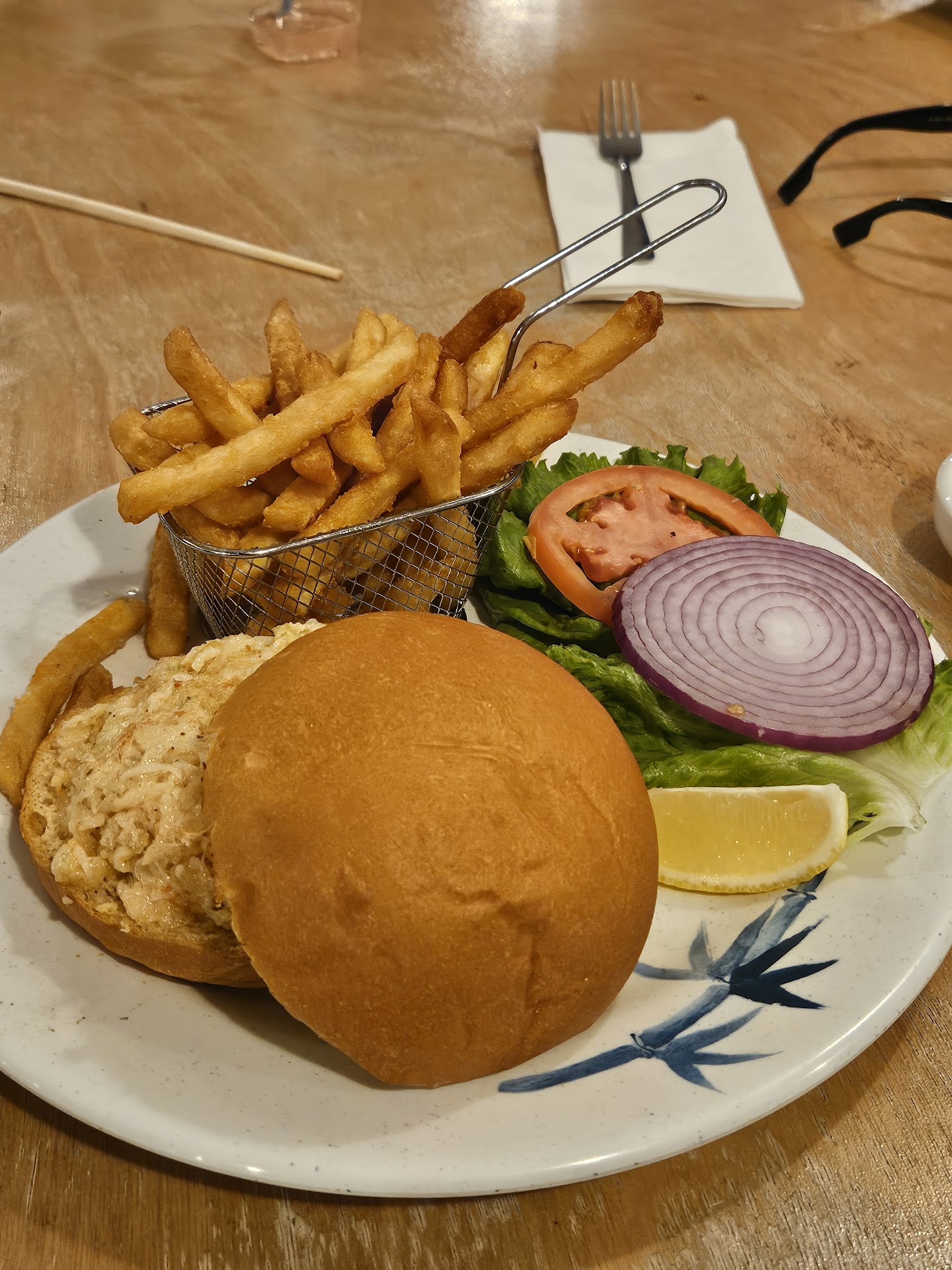 Food was sub par. The bread that was served with the "dipping spreads" (hummus, corn salsa, and bruschetta) was hard as a rock to the point were we completely gave up on attempting to eat it. We had asked about the crab stuffing prior to ordering specifically if it was all bread or mostly crab. we were assured that it was big chunks of lump crab meat and very little breading. This was not the case. It was a dry bread mixture with a few pieces of shredded crab found in one or two bites.