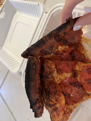(The following was submitted in 2021). Arrived for our pizza as a pizza was being removed from the oven. As it was taken out of the oven the lady cooking it stated she had burned this one. Put it in a box & handed it to me! I opened the box and sure enough, it was burned. The waitress had just arrived and offered to bring it to my car once the pizza was remade. I then paid but no tip (planned on handing it to the waitress once she brought it to my car). She did bring it to my car and I explained to her about my observations - after staring at me for a moment she responded that they always have us inspect them before we leave with it (she did not have me inspect this new one!). No apology. No tip. I left without inspecting - certainly this one was not burned. It was! Was it the original or a new one? It didn't seem to look as burnt on top but the bottom was very burned - black spots all over. Normally I give a pass to the first bad experience but this became egregious with a second burned pizza...
