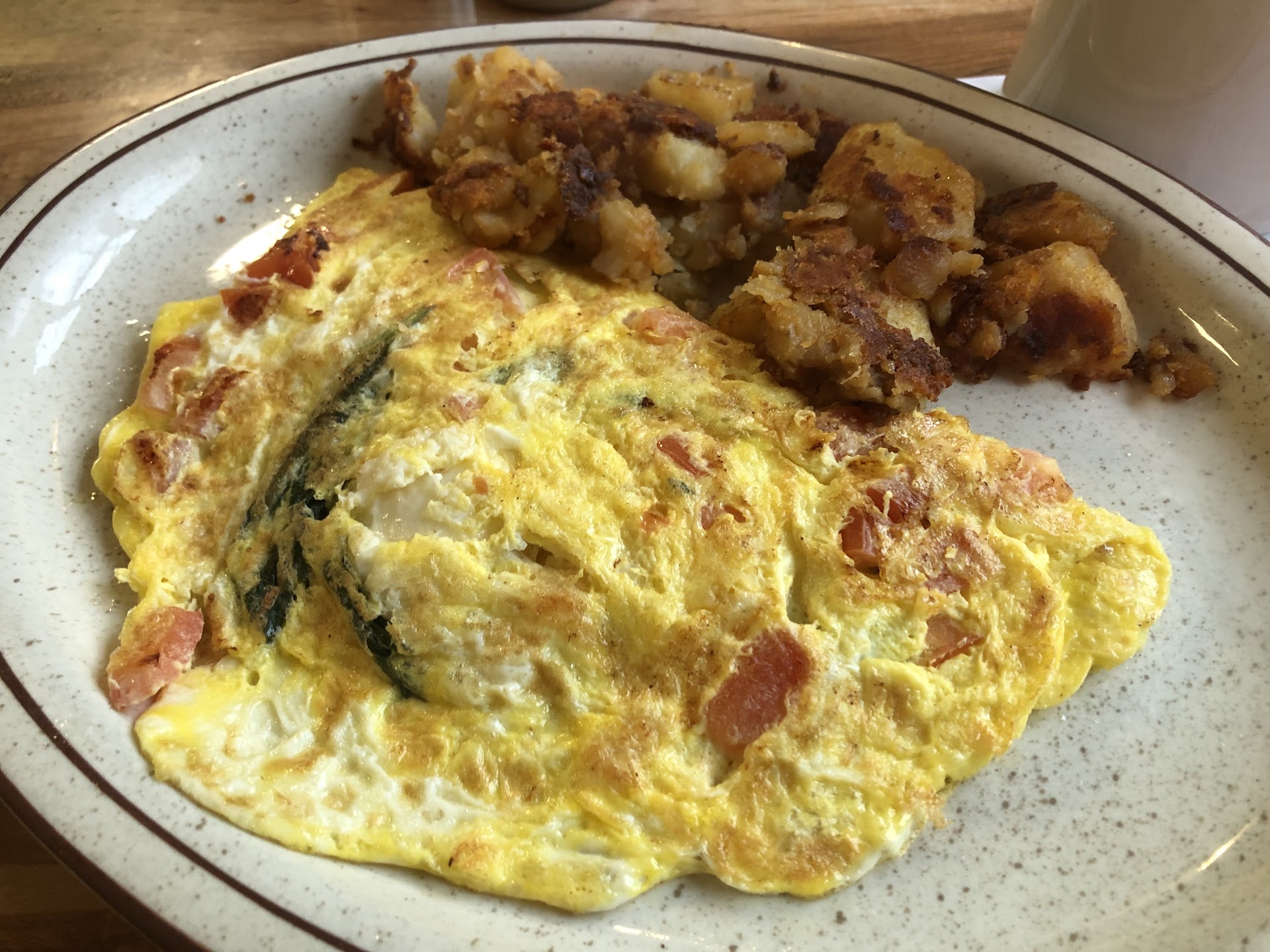 If you like your omelets or fluffy then this is the place for you. My opinion is an omelet should only cradle the food inside and not take away from what is inside. After seeing what looked like a "golden brown" hue on the omelet, I cut into the omelet knowing this poor thing was severely over cooked. Inside the omelet was some feta, but at this point it just seemed lonely and out of place as the rest of the entree was created a cacophony of a dish. The omelet was solid egg, that is not a compliment and best part of the dish was the english muffin.