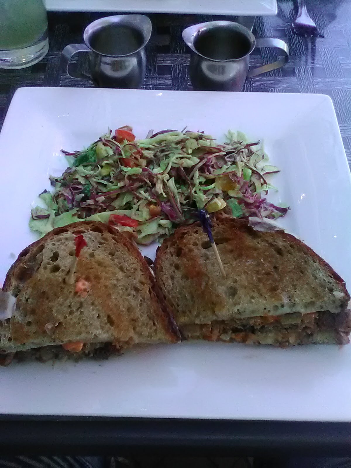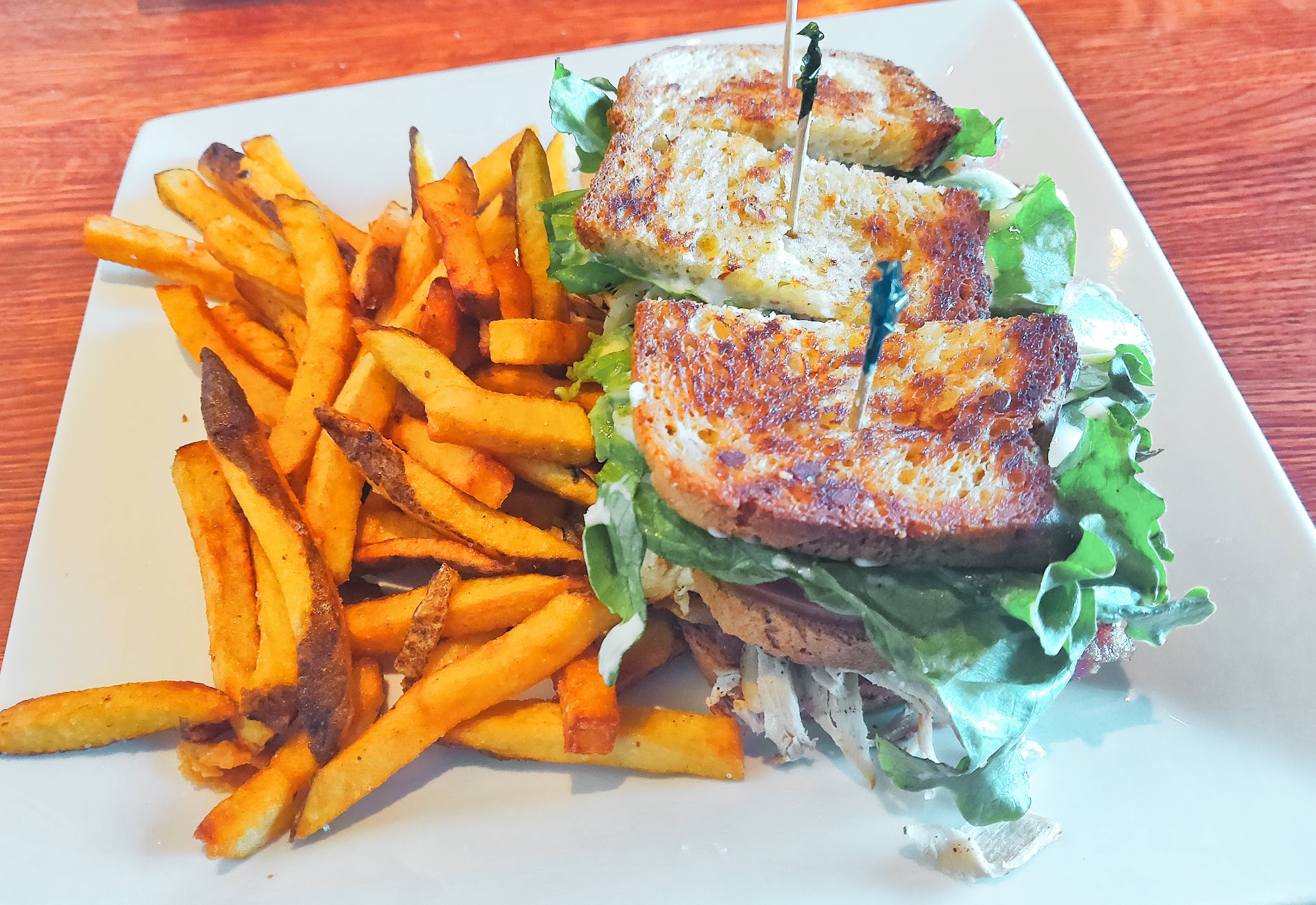 The cafe is quite nice. I always seem to order the same thing, because it's such a treat. Fish and chips, $14. I added a cider for $7. The fish was nicely crisply deep fried, but it was a darker fleshed fish, not the cod I was expecting. The French fries were served underneath the fish, which meant they did get a bit soggy. But the serving was plentiful, the wait staff was friendly, and service was quite fast.