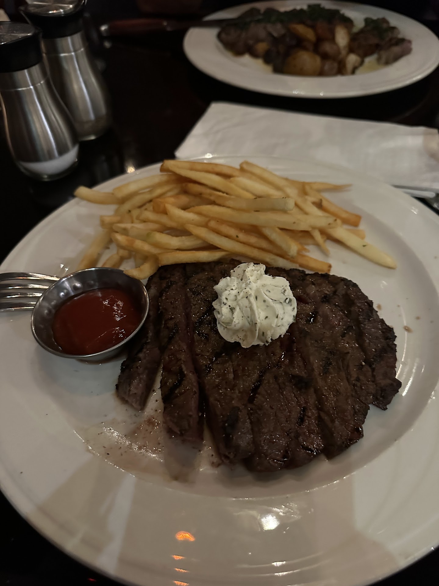 Read moreThe atmosphere in the bar area is really nice. There was live music, slightly dim lightly, nice vibe. We first sat in the regular restaurant area. There was no ambiance. Other than the tree style decoration which was kind of fun. It was empty feeling and our waiter was no good. I asked for mocktail recommendations and he was like well thereâs a list in the menu. Not fun no fun recommendations. He didnât ask if weâve ever been in before, didnât describe food to us or specials, just disappeared for a long time. I asked to be moved to the bar which was a great atmosphere. My filet mignon was horrible I didnât eat it. It was burnt on the outside. I am 99% sure it was not actually a filet mignon cut of meat it seemed like a rib eye, the texture was nothing like a fillet mignon. It was my birthday and I said so in the reservation but they did not mention anything. That has happened other places so maybe thatâs a thing of the third party reservation system. The server we had in the bar area was nice enough no complaints really but of course he was also the bartender so I didnât expect much. Oh there was one great thing! My mocktail I chose off the menu did end up being really good! It tasted like key lime pie and was delicious! Overall I wish I could have my $140 back. My husbands ribs were pretty good no complaints on that but wonât be back. Oh I also ordered the sautĂ©ed mushrooms which was probably my mistake because I donât like Dijon (which was an ingredient) but it actually hurt my throat (the vinegar or Dijon?) and I really wanted to like it and almost did but actually something about the flavor of the sauce made it essentially unedible. I basically didnât eat. Sorry I feel bad for such a bad review of a local small business but it was truly a disappointment. I will say, when you donât drink alcohol and eat out, things become...