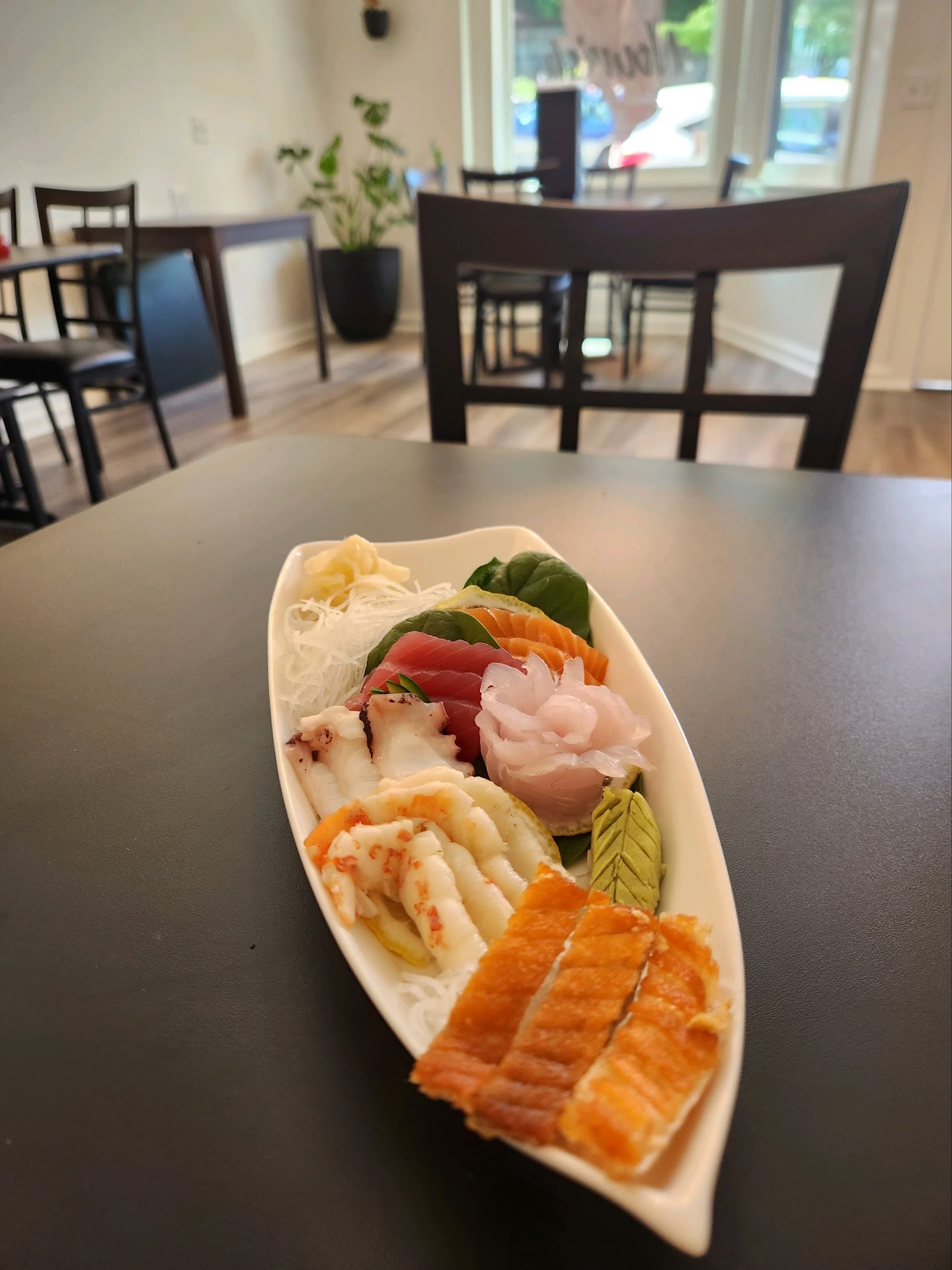 Weirdly, the sushi rolls came immediately, and we found ourselves in the situation of being finished with our rolls while still waiting on our appetizers, one of which was just edamame. The sushi rolls were tasty, and the mango added a bright and delicious flavor. There was also a hot mustard sauce going on that was pretty good. The salmon sashimi was a good quality fish, but was sliced very small and thin for being priced at 22 dollars for 8 pieces. When the appetizers finally arrived, the edamame was extremely salty. It wasn't inedible but it was definitely oversalted. The other appetizer we ordered was the buta balls, and this is really where the wheels fell off. Not only did they not arrive until we had already been finished with everything else for almost 10 minutes, but they were truly just awful. They are essentially a deep fried tempura batter ball filled with a flavorless mush in the middle. The texture was truly horrendous and neither my daughter or I could take a second bite. The waitress asked how we liked them, and there was no hiding the fact that we had barely touched them, so I let her know they weren't to our liking. She offered to take them off the tab, and when I declined she took half off for them anyways which was very sweet.