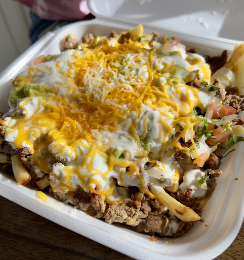 Food is excellent. Had the carne asada fries. It’s huge. Enough for 2-3 peeps. Fries are perfect size. Tons of toppings including tasty meat. Everything mixes up nicely. Also had the chile verde (green sauce pork). Super tasty and a bit spicy but not enough to make it too hot. Very rich flavor. Rice and beans were good too.