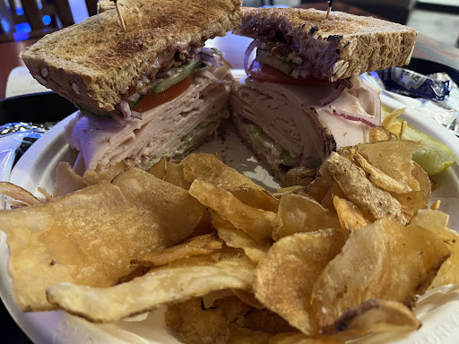 This would be the best place to eat in Luxor Hotel. We got in late from our plane flight around 11 pm, went to the deli and I ordered the turkey club. My husband had the corn beef sandwich. Both were very good, had Tater tots with our sandwiches. They were a little undercooked and blonde and not very hot. When we got back from the sphere show, we ordered one of the club sandwiches and we both got chicken noodle soup. We split the sandwich and the soup was excellent.. The next afternoon the next day yes I had the club sandwich again full of turkey crispy, bacon, avocado it was very good this time.I tried their homemade potato chips. They also were very good highly recommend this place. I believe the club sandwich cost $18.00 Because we’re older and don’t want to spend $30 or $40 to get to take a Uber or a taxi ride to other restaurants, and it’s hard for us to get around, we usually eat in the motel where we stay of all the restaurants in the Luxor I highly recommend their deli very friendly. Just look at these sandwich pictures at the loads of slices of turkey. I would eat one right now...
