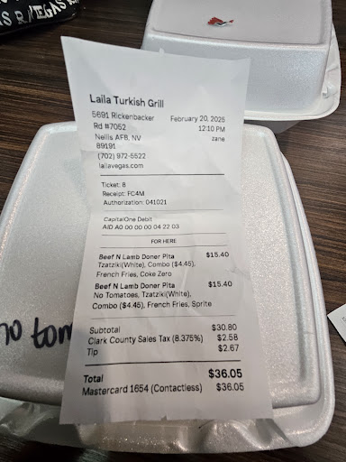 Read moreI Love this place! EVERY Time I go to Nellis AFB, usually once or twice a month, I make it priority to stop at Laila Turkish Grill, at the BX Food Court. I’ve had the beef/lamb & combo w/chicken gyros, All are AMAZINGLY Delicious! This last time, Rocio, Manny, & Joan served up the yummiest lunch, with such enthusiasm, care & the best customer service! THANK YOU, Guys! Wait, almost forgot the fries…Wow, so yummy…crispiest crinkle cuts I’ve had outside my home! If you like Mediterranean food, it’s a must have…your taste buds...