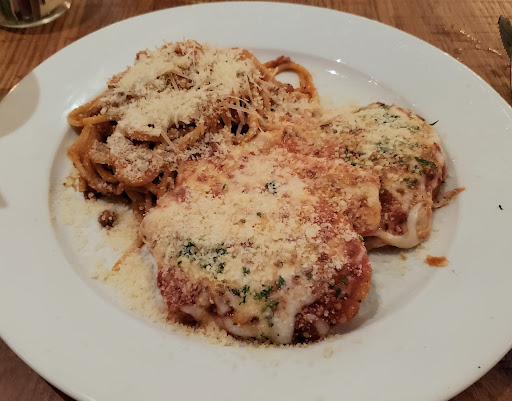We started out with a piece of focaccia bread that was super, super tough. But overall, it tasted ok. I feel like the soup was better than good but not superb. In all honesty, I was feeling nostalgic as I ate it because it truly tastes like Franco American or Chef Boyardeeâs canned ravioli (I know they donât want to hear that butâŚâŚ). The person eating the salmon said that it was fantastic and it was juicy. The chicken Parmesan had a crispy Parmesan crust, a little sauce and melted cheese. The spaghetti was al a dente and the sauce (imo) was a bit salty. Dessert came and we had the tiramisu. It came with a lady finer cookie and the people dining with me loved them, and I felt it tasted strange. The tiramisu was well thought out, presented well and tastes good. Another comment at the table was that there was too much cocoa at the top of the dessert and I almost agree. The taste was fine but it put a heavy coat on your teeth as you ate. Overall, it was a solid experience and the food was above average and the price was unbeatable for what you got.