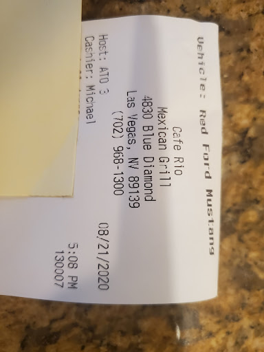 Read moreI wish I could give zero stars. We walked in at 4:10 p.m. on Thursday 9/09. There was only one lady with her two small kids ahead of us and only one employee both taking and preparing her order. At the same time, there were 5 other employees aimlessly wandering around behind him not helping him one bit, including the person we later learned is the manager. We would have thought they might actually do some work and pitch in. By the time we actually placed and received our order was 4:36....26 minutes. We've been to many other Cafe Rio's and never did it take longer than maybe 10 minutes even with quite a decent line. When I finally got to the register, I asked if there was a manager around. The girl said yes and pointed to her. I asked the cashier to ask her to come over to our table so we could speak to her. She never came over. Before I left the cashier, I leaned over the counter and handed the guy doing all of the work $5 and told him it was for only him. I purposely said it loud enough to make sure the others heard and saw me. We were so happy we were only 2nd in line otherwise we would probably still be there waiting in line. The employees are a direct reflection of the management and they way they were trained. $34 for the slowest service I have ever experienced. Never...