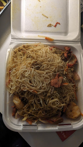 The egg rolls were delicious. I definitely recommend getting these. I would just eat these for a meal if I could get more than 2. The pepper and onion pork was also delicious - the pork was properly cooked with a slight crunch. The pepper was like black pepper spice and some green peppers with onions. The rice was a little bland but also had some chicken pieces which made us question whether they gave us chicken fried rice for the price of plain fried rice! The Singapore curry noodles were good. The curry masala was delicious. I'd expected the noodles to be thicker rather than being of the vermicelli variety. They were a little hard to eat because the meat was at the bottom and I couldn't mix it all properly. The beef pieces were big and a little chewy. The shrimp and veggies were very nice.