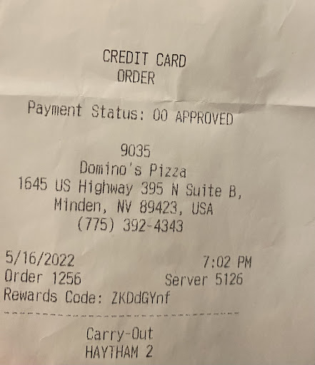 Ā Ā Ā Read moreChis, owner/manager took harsh position with, a customer. Staying at the Carson Valley Inn, it was an easy decision to walk across the parking lot to pick up a pizza. No big deal. I was kept on hold 20 minutes. Frustrated knowing I could just walk over there thatās what I didā¦the entire time still on hold! Chris, was so upset with me (the customer) because I was upset showing him on my phone Iām STILL ON HOLD mind you, was ready to fight me in the parking lotš. But challenged him back. Iām a customer. Who does that? Iām not a ākarenā but damn if I let someone do that to me. This will fall on deft ears, and thatās okay. I still like Domino's, but what the serious heck? Iām so mad at the āserviceā. I didnāt even get my pizza, because we were going to fight! In the parking lot! Crazy ā¦. Pizza is good., people (Chris) not so much. I am a local and have never done a negative review. Iāll run this up the flag pole. He doesnāt deserve...