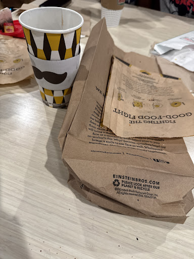 Read moreThis location was terrible and I highly recommend avoiding it at all costs. The wait got out order took about 45 minutes and the Sandwhiches were on the wrong bagels and had the wrong customizations. Our total cost for 4 bagel egg Sandwhiches and 4 drinks (coffee, milk, water, and orange juice) was $96, which is insane for this type of food. We went to this location because we've had great experiences at other Einstein locations. Each would.our bagel Sandwhiches were half warm and half cold because the stuffed so many sandwhiches on the tray in the little oven. They gave us chocolate milk instead of regular and when I went to exchange it, I just got a mountain of attitude, like I was inconveniencing the staff. The $6 water bottle I got was for a Smart Water (the only option for bottled water) but I received a small Aquafina bottle. We just ate our half cold sandwhiches and got the hell out of...