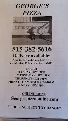 Read moreGeorge's pizza shares a space with Cubbies on Main. Their pizza is absolutely gourmet quality as far as I'm concerned, and they have several very interesting flavor combinations. Pizza is not sold by the slice but by the pie, which they bring out to you and serve to you on a convenient tray. All the sides I have tried were quite good, I especially liked the fried mushrooms and the fried cheese curds. Beer is available on tap and in bottles/cans. Prices are reasonable, but not cheap. The service is acceptable, it's a small town restaurant and everything moves a little slower. It took me about as long to get an entire pizza as a beer the last time I went, but usually, the service is quite prompt and polite. It doesn't tend to ever get very busy, as far as I can tell from the 3-5 times I've gone. It's a quaint little out of the way place and definitely a hidden gem. Note: The building looks different than it does in most of the photos. There is no longer a street art painting of a piece of pizza. The entire thing is just plain white now. It makes it look drap and depressing from...