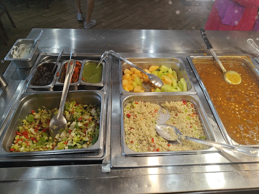 10/19-What a wonderful little hidden gem of a place. This is a buffet. And the number of dishes is "limited". But this is a buffet in the back of a temple not some casino! Wife, friend and I arrived at 645 (hour before closing) and were there till they closed. They kept bringing food out when they noticed dishes where empty. 2 kinds of rice. 4 "entree" type dishes. 2 deserts. Potatoes. Salad. Sauces / bread by the dishes. All dishes are vegan sans the galub jamun which had a label stating as such (thank you!). Not gonna lie, was looking for vegan Indian food. Was slightly skeptical when I saw the lay out but, 4 different entree type choices? 2 desert choices? This was enough for my co eaters and I, and we all enjoyed the quality and taste of the food. Def a unique experience and what my perception is, being in the back of their temple, the $ for the buffet goes immediately back into providing an additional $ resource for their temple and it's upkeep.