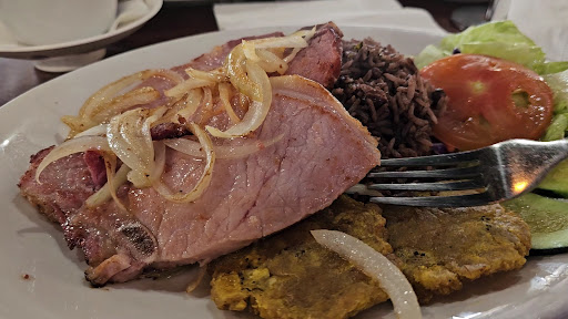 I wanted to try something new with my mom, we have our days when we go get something to eat together and I wanted some Cuban food. By the reviews and photos I figured this place was gonna hit the spot, but sadly it missed the spot. Oddly you order your food when you walk in, I was anticipating someone seating us and taking our orders. We got a menu, and found a booth and looked through what we wanted to order. I was turned off already by the ordering system, I was also disappointed in their drink options. I wanted to keep it simple and get a Cuban sandwich, my mom ordered the bistec plate and I got my daughter the chicken breast plate. My biggest pet peeves with Latin restaurants is when they serve frozen store bought platanos or tostones - yuck! That's exactly what was served with the plate orders, my mom said her bistec was tough but had okay flavoring. The chicken breast wasn't bad neither but did have an overwhelming taste of vinegar in some bites. The congri wasn't bad, it was on the warm side verses it being fresh and hot. Now the Cuban sandwich was what grind my gears, it had ketchup! In all the years I've had Cuban sandwiches and even made them myself, it never ever includedes ketchup! Not only that but it was more ham then pernil - let me put it this way; I didn't eat it. I ended up eating my daughters plate since she didn't want it and the sandwich went in a to-go box since my mom did not want me to say anything about it. It'll most likely end up in the trash since I told her she can take it back home with her. What a big let down, I am so disappointed with all these fast food like Cuban restaurants. I want to go to a place where I can sit down, have someone come take my order and have a traditional real Cuban food made with love. My husband is Cuban and he would have laughed and said something about the sandwich if he was with us. The funniest part is when paying for the food before the food is served, they ask for a tip but what are you tipping for if there is no service? They just bring out your plate and that's it. I would not go back and I do...