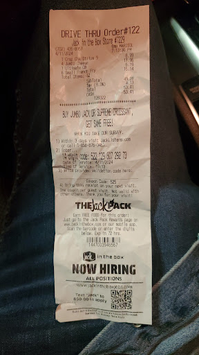 Ā Ā Ā Read moreIām not sure what is going on at this Jack in the box. I have eaten here for several years and it was always so good. But in recent months it seems that the food quality is just at an all time low. I havenāt been to this location in a few weeks. I heard about the Jack on the Box app so I downloaded it and decided to give this location another shot. And I was let down yet again. My tacos were cold and soggy and looked like my 2 year old son put them together. My burger was sloppily thrown together and when I bit into it it tasted like the meat was just straight raw and rubbery and also cold. My curly fries seemed to have been roasting in some 5 day old oil to taste the way that they did. I am a huge food person. I love food. So when I get an order that is as disappointing as this one it really gets to me and makes me feel very upset because I was looking forward to a nice hot and fresh meal. Only to be disappointed and now still hungry and have a stomach ache from the 3 bites that I did have.