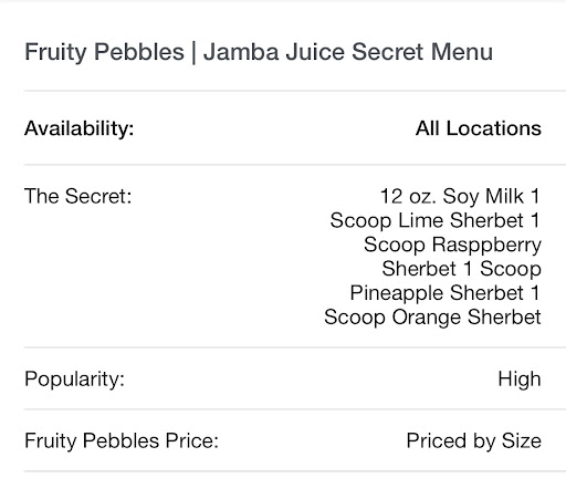 Read moreThis place is understaffed with lazy workers. The person on the cash register was “Janet L” when I came on 11/28 at around 7:20-7:45 and she was very rude and not accommodating. I asked for a white fruity pebble which is on the secret drink menu and I order it all the time at many locations and they always make it, she didn’t know what that was so I pulled it up on google for the ingredients and showed it to her and she said “we don’t do that” rudely without seeing it. Even though it says it’s available at “All locations.” After that I ordered a orange dream and she said “we don’t do that” without LISTENING then I said “it’s right there on the menu.” Once i got it, it wasn’t well blended and there was chunks of ice and it was watery. That’s unacceptable for a drink you're paying $9 for after waiting in a long line.
