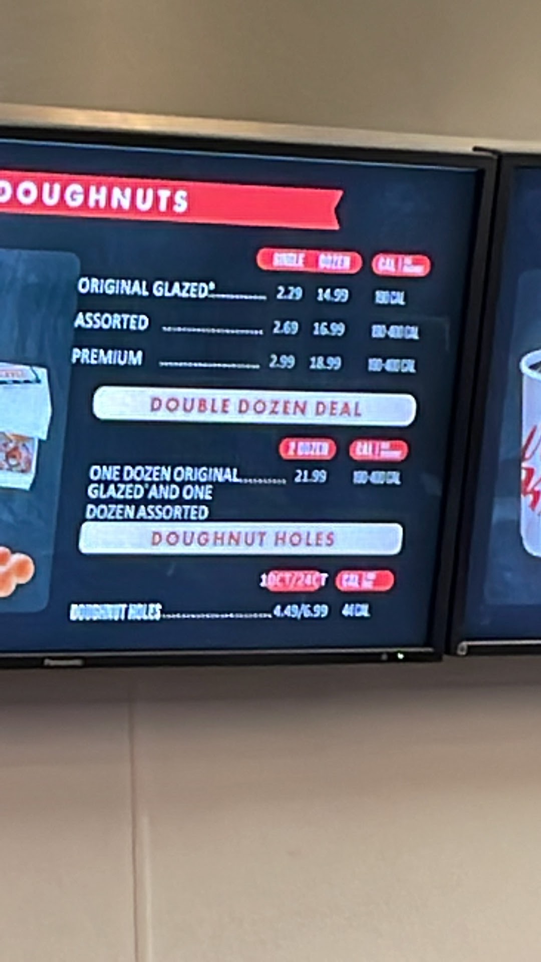 Read moreI curious why this Krispy Kreme was rated so low because most Krispy Kreme stores are rated closer to 5 stars than 4 but then i had the disservice of ordering from there this morning. I was in town to get my prosthetic leg 🦿 repaired. I know it's a bad way to spend my birthday but I was trying to make it better by ordering some donuts for my birthday breakfast. Since I am disabled I can't walk the half a mile across the street to the store so unfortunately I had to have it delivered. First the Richard the driver refused to meet me in the hotel lobby. Then he just left the donuts and didn't tell where he left it. He only would state that he left it in a safe place so when I finally found the 36 donuts in the hallway, there were 2 donuts missing. I am sure Richard the driver didn't eat them because with his access to the donuts he certainly wouldn't steal these stale donuts. I had ordered a box of glaze and box of assorted. In the picture of assorted there was not more than anymore than 2 of any one flavor. So I knew I would only have to throw away no more than 2 strawberry which I am allergic to but there were 6 strawberry. Then there were 8 more of the glazed which i had already bought 18 of. Which I assume is why he didn't want to meet me because ager 15 dollars in tips fees on a 36 dollar order. You would have thought just the vegas heat would've earned up the donuts and soften them but no they hard, Stale and Cold. They must think that only disabled like them stale and cold or why would they advertise HOT donuts in a store window? Maybe it's to warn customers that the donuts are hot, but after my experience today that they obviously don't care about customer service or quality. So thank you for your service or...