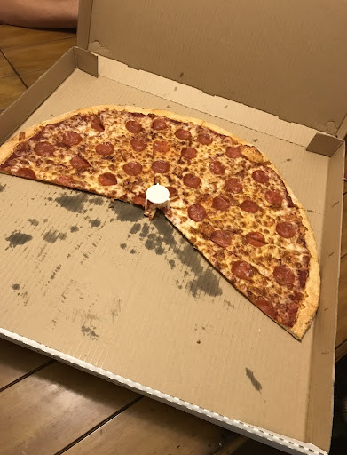Also, the marinara sauce was fresh out of the fridge cold and in the box with my breadsticks, so they were cold after the 1 minute drive home with a heating pad under the food. Was going to leave two stars, but that is just unacceptable. If you're gonna stick me with 4 or 5 stick of baked dough with pan crustings as seasoning, at least keep the refrigerated sauce...