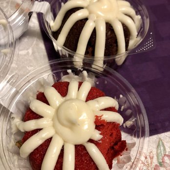 Last year, the woman helping us asked if I wanted to join the email club & said that I'll receive a gift on my birthday. I informed her that I don't celebrate my birthday but asked if it was ok to put the baby's birthday instead. She said it was ok. So this year I received the email & planned to pick it up along with an order. When we walked in we weren't greeted & when Anika asked if we were picking up an order, she was rude, never smiled, all around, she didn't seem too happy being there. So I told her that I wanted to pick up the bundtlet & showed her the email. She asked for my ID which I informed her that its not for me, it's for the baby. She then tells me that she doesn't know why people keep doing that when it clearly states on the form that its for 13 years or older. I'm sorry but for a busy adult trying to juggle 2 kids on top of everything else, we don't have time to read the fine print. I just quickly filled in the main lines. So I asked her how to change my birthday on my email. She handed me another form & pointed to the fine print that states 13 years or older & told me that I had to fill this out again & to make sure that its for 13 years or older. I did, putting MY birthday & asked if they could make the exception this time since I was not aware of this & the woman who helped me last year never confirmed the age knowing I'm using another person's birthday. She asked if I remembered her name. From last year? Of course not! So she stared at me for a moment before telling me that she'll have to talk to her manager. Less than a minute later, she tells me that her manager won't honor the email. Not wanting to argue about the situation I tell her that we want to place an order for a dozen Bundtinis. So my sister & I are looking at the menu & trying to decide which flavors to get. Anika asked if we wanted it pre packaged. I tell her no because we don't like the lemon. I asked my sister what flavors to get. Anika sighs, clearly expressing her irritation with us & speaks loudly asking us what would we like. I remind her that we're going over this & if she could give us a minute. After a few minutes I placed the order & asked her how long this will take & she says 25 minutes. We paid, stepping out with the kids & got us a drink at the Boba shop while we wait. In 25 minutes I leave my sister with the kids to pick up our order. I go in & Anika is looking right at me with a stank face. I sip on my drink as I'm waiting in line for her to finish up with the customer before me. When its my turn, I show her my receipt. She walks over to the box sitting on the counter & hands it to me without saying a word. I thank her & as I'm leaving, not one employee there said a thing, no goodbye, no have a nice day, nothing. That didn't bother me as much as when I opened it up for my sister to see, 2 of the minis are tipped over & the frosting to one of them smeared onto the box. We're already running behind schedule, so I quickly close the box & leave to finish running errands for the party. It isn't until we're about to sing happy birthday that I noticed our order was wrong. I asked for 3 choco chips, 2 white choco raspberry, 3 pecan, 2 red velvet, 1 confetti for the birthday girl & 1 vanilla. What I got was everything but the vanilla, instead they gave us 2 confetti. Yes it's not that big of a deal, it was still good & the kids & adults loved it. But all of these little things added together from rude workers to them not only getting my order wrong but also messing up the minis as well. Bear in mind, we don't live in Henderson & they were the only location open that day, about a 25 to 30 minute drive. Would I recommend my family & friends here? Absolutely NOT! I've gone to the others as well for my job because we market to providers & other businesses & we've always had such a pleasant experience. Now I'm going to reconsider going back in the future. The cakes are delicious but not worth the...