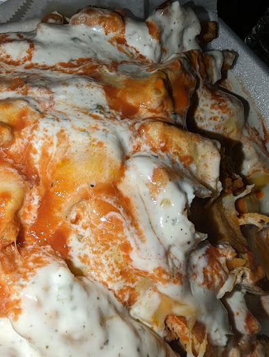Came in to hang out at the closest bar after a long work day, and noticed a pizza shop over at a bar I hadn't been to before. Bar itself was fine, but the pizza shop owner was very friendly, clearly passionate about his own food, and the end result made that clear. Prices were reasonable and the menu selection was fair. I ordered the steak sandwich, poppy pizza, and the buffalo fries for my father and I. The pizza had a perfect garlic flavor, crust was nice and flaky, and the toppings had just the right amount of flavor and crispiness. The steak sandwich was well seasoned,.wrapped neatly, and every bite was very enjoyable. As for the buffalo fries, the sauce was nice, buffalo chicken cooked perfectly, and abundant with fries. Wait time was understandable with such a large order, and the chef was able to get out several meals including my own within a half hour time span, so you won't be waiting too long.