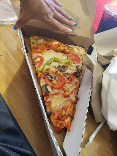 Read moreIf you were hungry and staying at the casino, please walk on by this place because the pieces or at least or taste in look an hour old.. I'd rather go to a gas station and get pizza. It is a lot better.. Employee walking out in the hallway. Touching stuff with her gloves on talking to other workers. We were given 7 packets of pepper and one packet of parmesan cheese and had to ask for silverware, and he gave us 1 pack of that and there was 2 of us, so we had to ask for another pack.. Very hard, tough, and chewy crust. You can tell it's been in the warmer for a good while. Pizzas are definitely not fresh.. Half of the pizza...