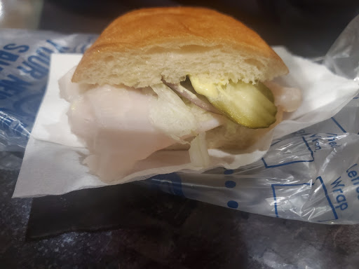 The pastrami on my sandwich was the worst deli meat I've ever been served. All of the veggies are wilted, see photo. While I was waiting for my order one of the employees pulled out a container of shredded lettuce and covered over the wilted and browning lettuce in the bottom, which I'm pretty sure is a health code violation. I had to repeat myself a number of times when they listened to me at all, they would just start making a sandwich without asking how I wanted it; ended up with the wrong cheese on one sandwich but after awhile it's just not worth the effort. One employee asked if my grilled cheese was cooked enough I said no so she put it back in the oven hit some buttons but never turned it back on and didn't ask a second time. Neither employee knew when they should replace their plastic gloves wearing them like a part of their uniform, another health code violation and why I will always think of this chain as the Port of food...