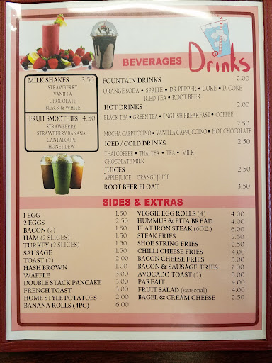 Though we played it safe with our orders, my favorite part of this restaurant was the hilariously diverse menu. Where else can you find a menu that includes all your standard breakfast favorites AND tiramisu, curry, philly cheesesteak, yakisoba, milkshakes, egg rolls, hummus,...