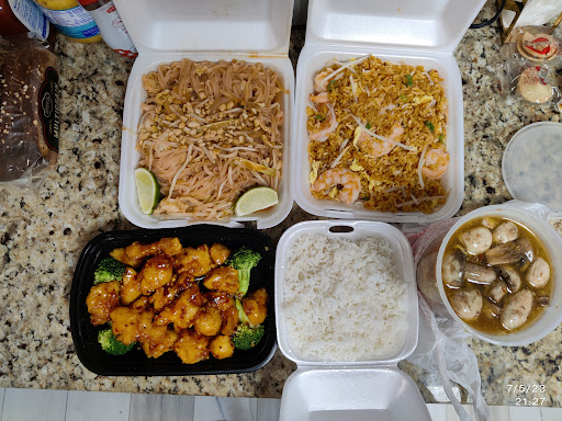 I've ordered take out grub here many times, but always forgot to review it. This time I ordered General Tsos Chicken, Chicken Fried Rice, Thai Noodles and Hot and Sour Soup. With orders over a certain amount, the white rice and two egg rolls are free The General Tsos Chicken is always the best, more like orange chicken.. The Thai noodles are really Phad Thai, and don't use as much fish sauce as the real thing (which is a good thing for me). The Shrimp Fried Rice is bland - with eggs and bean sprouts. The Hot and Sour Soup is only whole mushrooms with egg drop - no bamboo shoots, chicken or lao tofu. Previously I've had the Kung Pao Chicken, just so-so. Ate here again and had the Shrimp with Vegetables and Curry Chicken. The first was very good, the second dish had an ok flavor but was very saucy. Overall, not the best but the price, generous quantities, and quick service keep me coming back Np tofu dishes at all.