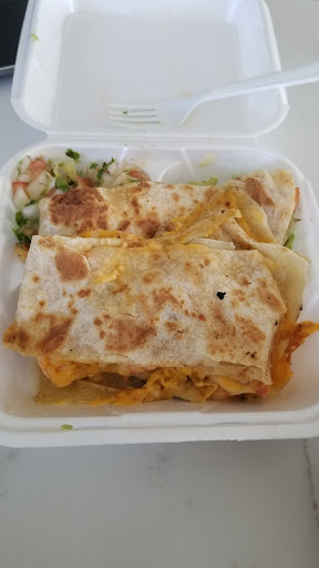 We didn't stay to eat so beyond entering the building and waiting for our food I can't speak to the prolonged atmosphere. It was clean, empty, and didn't feel or appear cluttered unlike some Mexican eateries; in my opinion, a lot of Mexican establishments have a lot going on decorative-wise (including table & chair placement and quantity) on top of their pictorial menu all over the walls and windows making some of those establishments feel a bit grimy even if they're not.