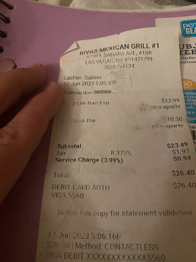 Read moreWill never return due to Racist kid hating Cashier! Do you wanna get your food the right way? If it’s messed up, they WONT fix it and replace it guarantee. The only reason I am giving 1 star is so I can review or I’d give 0. The portions are smaller than any other Mexican restaurant in Vegas. The cashier is rude to everyone who was there while we waited for our food was racist towards our kids they are mixed but she said terrible little white kids I assume because I asked her VERY POLITELY (I thought it was a mistake no biggie) to replace my food that was made wrong and I wanted to return the food and I have my receipt (as you see) but she said no one is going to fix my food and she HUNG UP on me when I asked for her name (since there’s no one in charge except Monday) I was able to record her and my politeness in case something happened to my 3 yr old with a food allergy, and this woman intentionally ( I said intentional because of her attitude, racist remarks, and her not wanting to fix my order) did not remove something that could have killed my daughter. Good thing I checked before...