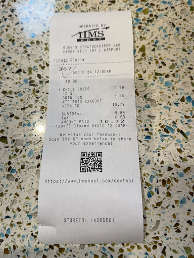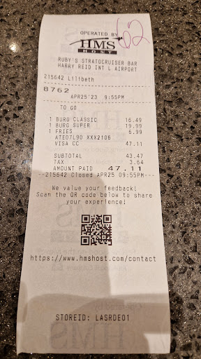 Read moreRegarding the disgusting experience my wife and I just experienced at Ruby's Diner in Las Vegas airport. A lady (I use the term loosely), by the name of "Sycamore" is a disgrace to your entire company. After dining and paying no small sum of $47 for two burgers and one fries she berated me and my partner when I asked the simple question of, "is this our order?"